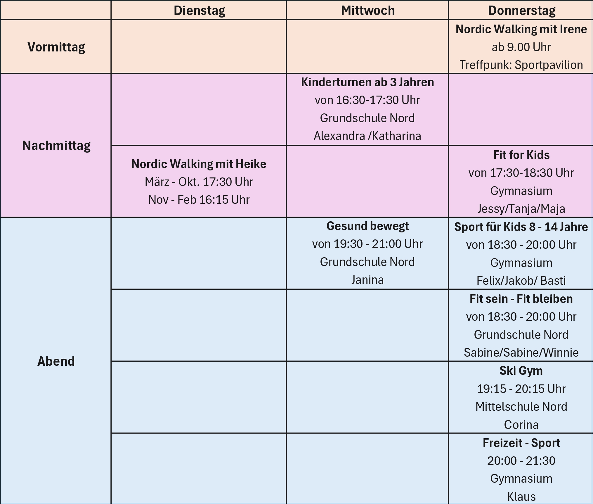 Mittwoch, 16:30 Uhr bis 17:30 Uhr Grundschule Nord Turnhalle
