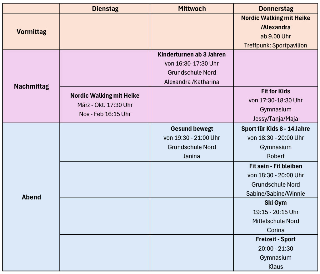 Donnerstag 19:00 Uhr bis 20:00 Uhr, Mittelschule Nord Turnhalle